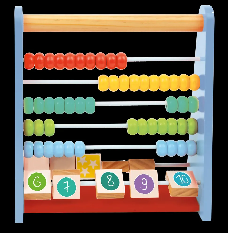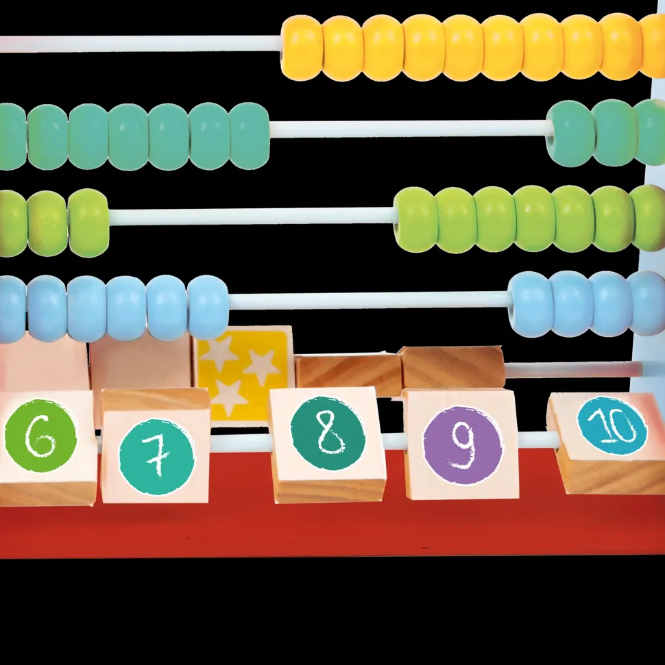 Cinque File Da Dieci Palline Ciascuna, In Cinque Colori Diversi, Per Imparare Le Basi Del Calcolo Matematico E A Riconoscere I Colori. Due File Di Tessere Con Numeri E Disegni Per Comprendere La Corrispondenza Numeri-Quantità: Il Bambino Imparerà Ad Associare Il Concetto Di Quantità Ad Un Simbolo Numerico.