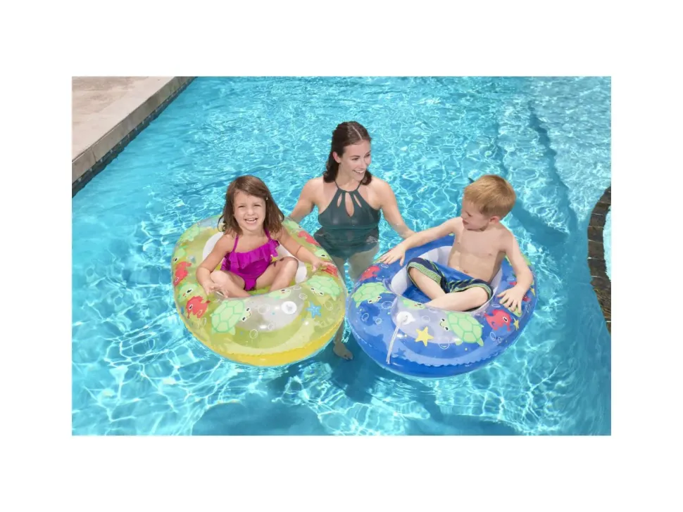 Questo Canottino Gonfiabile Da 102×69 Cm È Davvero L’Accessorio Da Mare Perfetto Per Il Tuo Bambino. Disponibile In 2 Colori Assortiti, Possiede Un Fondo Gonfiabile Per Un Maggiore Comfort, Una Fune Da Traino Con Gommini Integrati E Un Finestrino Trasparente.