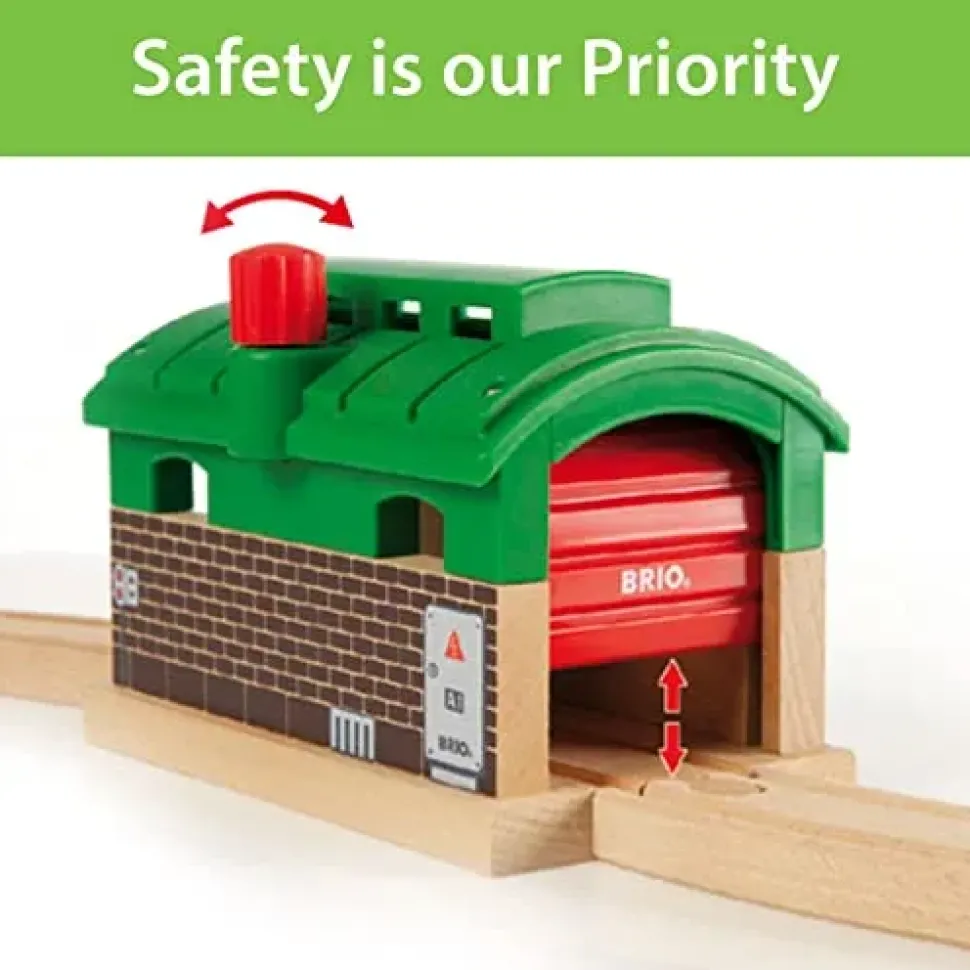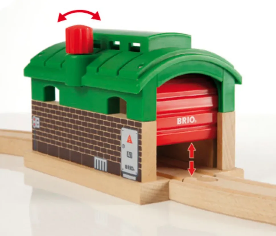 Nel Caso Ci Sia Bisogno Di Manutenzione Per I Treni Brio Questo È Il Deposito Perfetto Per Tutti I Treni Brio: Ruota Il Pomello Sul Tetto Per Aprire Il Portone Del Garage E Deposita I Treni Che Hanno Bisogno Di Essere Riparati. Se Invece I Treni Brio Sono In Perfette Condizioni E Pronti A Viaggiare Puoi Lasciare I Portoni Di Ingresso E Di Uscita Aperti Così Da Trasformare Il Deposito In Un Tunnel!