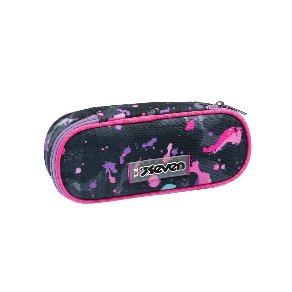 Bustina Round Plus Seven Che Presenta Taschino Interno Con Zip E Passanti Elastici Portapenne. Nuova Etichetta In Gomma Personalizzata Con Logo Seven E Cursore Personalizzato.