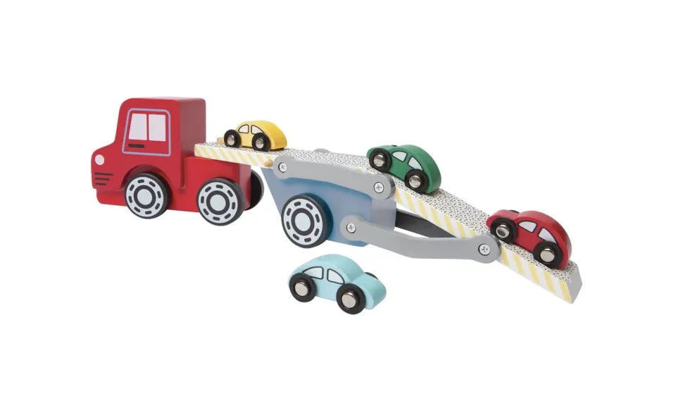 -Camion Con Rimorchio A Due Piani, Trasformabile Per Facilitare Il Carico E Lo Scarico: Abbassando Il Ponte Superiore Le Macchinine Potranno Essere Caricate Facilmente Sul Rimorchio.