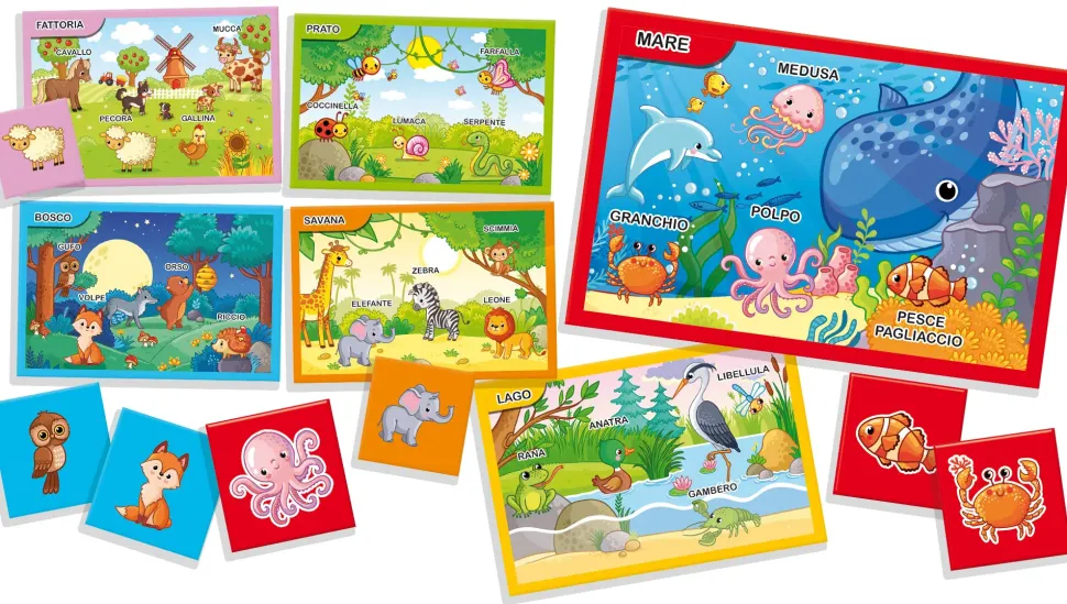 Con Le Cartelle Degli Ambienti, Il Bambino Mette Ogni Animale Al Posto Giusto E Impara Ad Associare Gli Animali Alle Parole. Una Tombola Educativa Per Arricchire Il
