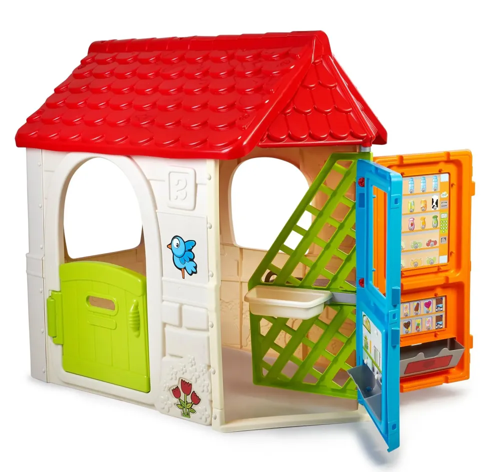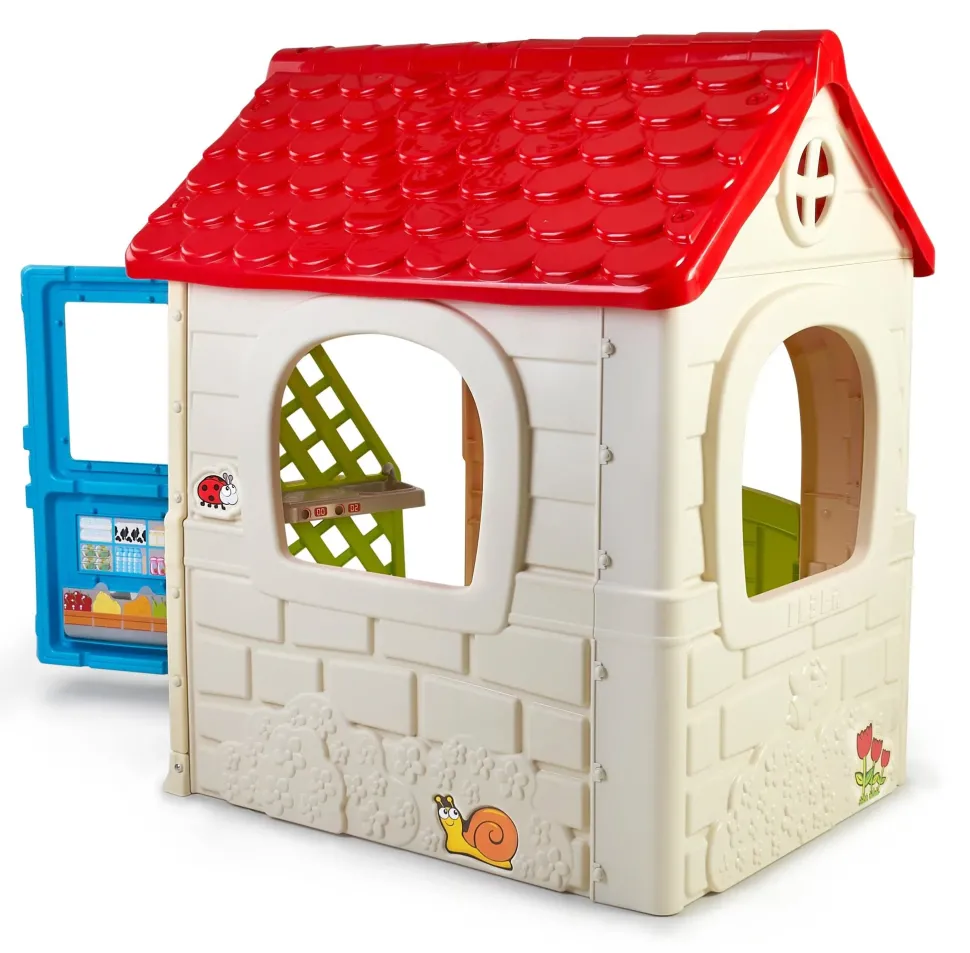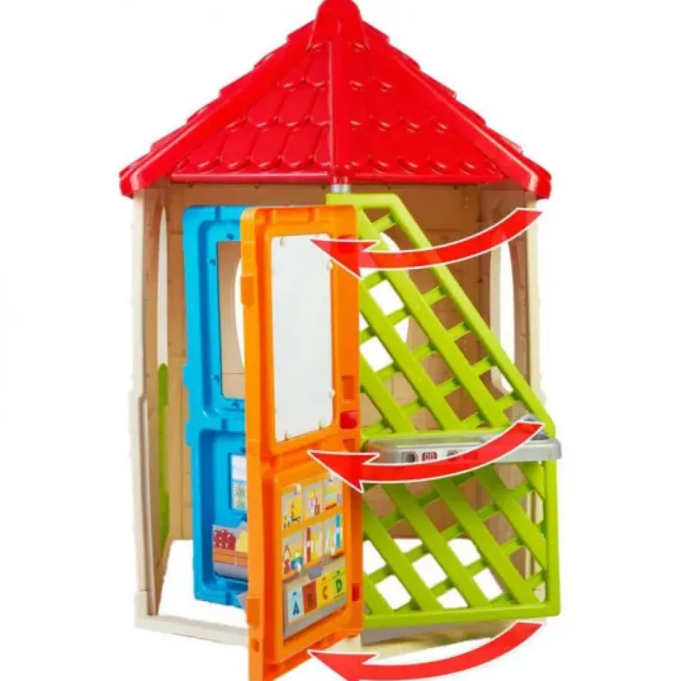 Feber Girohouse È Una Casa Per Bambini Che Include Una Porta Girevole Con 6 Diverse Aree Gioco: Cucina, Barbecue (Con Lavello), Giardino (Con Fioriera), Distributore Automatico, Scuola (Con Lavagna) E Supermercato. Robusto, Facile Da Montare E Con Sistema Anti-Uv Per Prevenire La Perdita Di Colore E Aumentare La Resistenza Della Plastica.