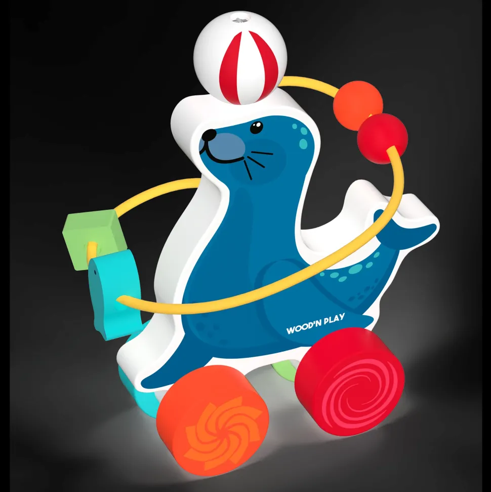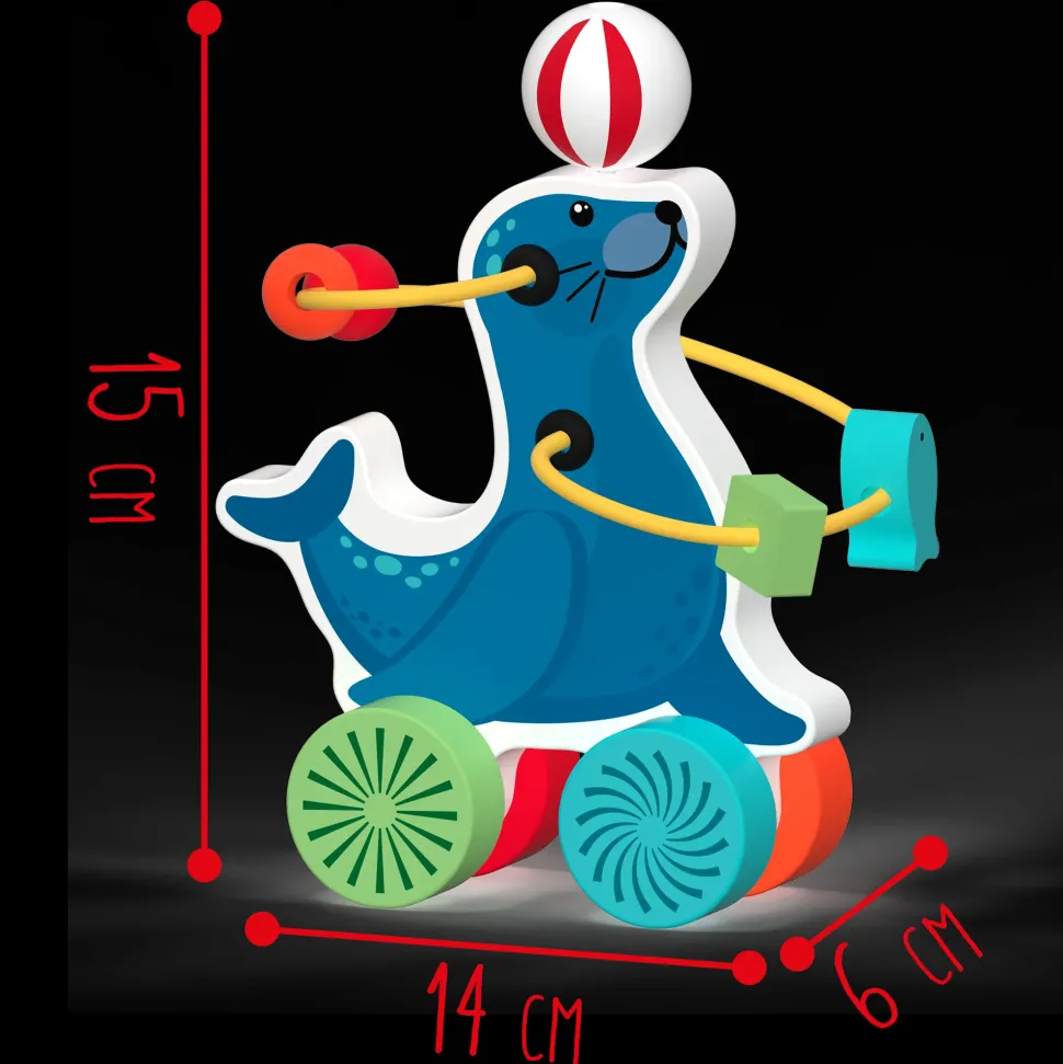 Simpaticissima Foca Con Ruote Colorate Per Vivere Grandi Avventure! I Bambini Si Divertiranno A Far Scorrere I Pesciolini Lungo Il Labirinto E Scopriranno Che La Palla Sulla Testa Gira Veramente! I Più Piccoli Potranno Sviluppare Le Loro Capacità Motorie. Scegliendo Questo Gioco, Aiuti Le Foreste! I Giocattoli E Gli Imballaggi Della Linea Wood ‘N Play Sono Realizzati Con Materie Prime Certificate Fsc®(Fsc – C155880), Provenienti Da Fonti Forestali Gestite In Modo Responsabile.