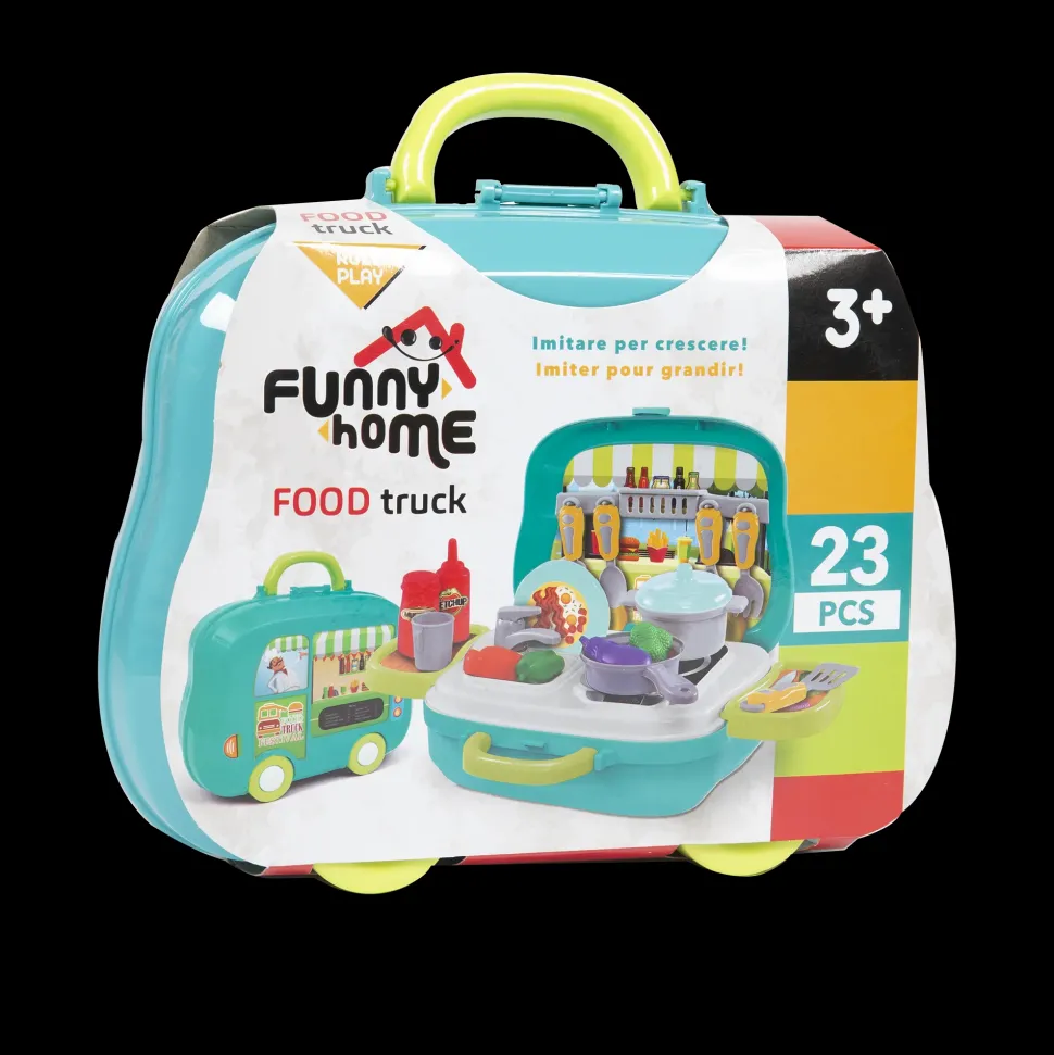 Questo Simpatico Furgone-Ristorante È In Arrivo A Casa Di Tutti I Bambini Che Hanno Voglia Di Cimentarsi Ai Fornelli! Questa Valigetta Con Ruote A Forma Di Furgoncino, Una Volta Aperta Si Trasforma In Una Piccola Cucina Con Lavello E Fornello, Due Comodi Piani Di Lavoro E Tanti Accessori: Pentola Con Coperchio E Padella, Posate, Utensili E Alimenti.