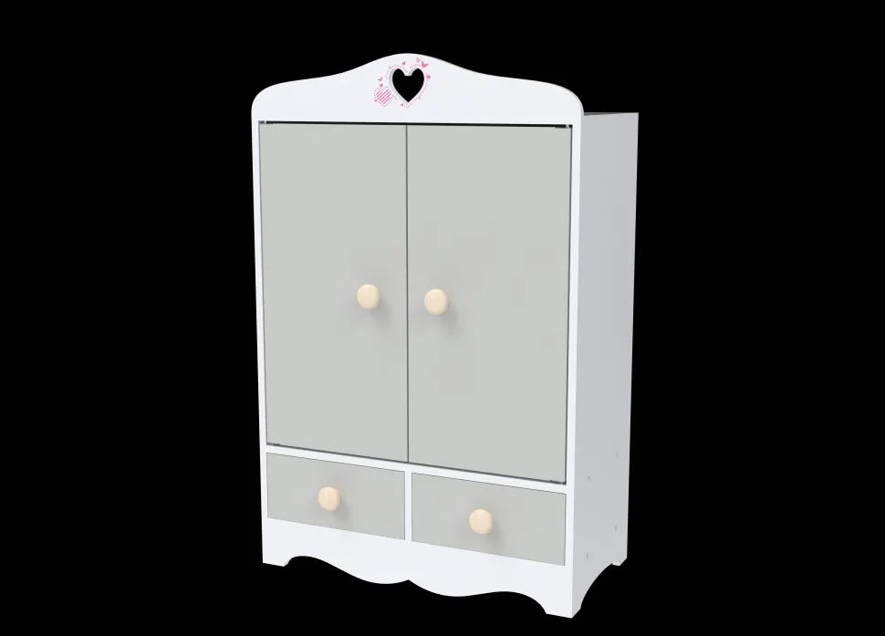 E’ L’Ora Di Scegliere L’Outfit Giusto Per La Tue Bambole! Mini Guardaroba In Legno Con Bellissimi Dettagli. Completo Di 5 Appendiabiti.