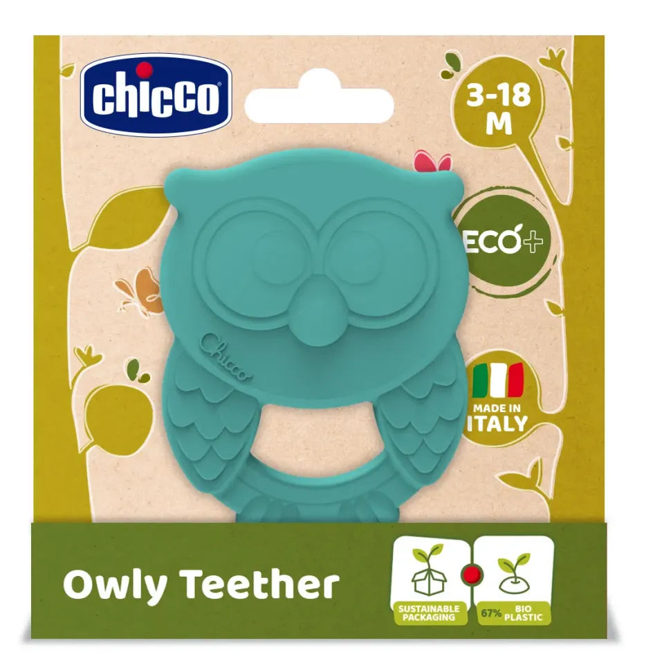 Massaggiagnegive Super Leggero A Forma Di Gufo, Realizzato Con Almeno Il 50% Di Bioplastica Proveniente Da Fonti Vegetali, Perfetto Per Dare Sollievo Al Bambino Durante Il Periodo Della Dentizione. E’ Facile Da Afferrare Ed È Paint-Free, Per La Massima Sicurezza Del Tuo Bambino.