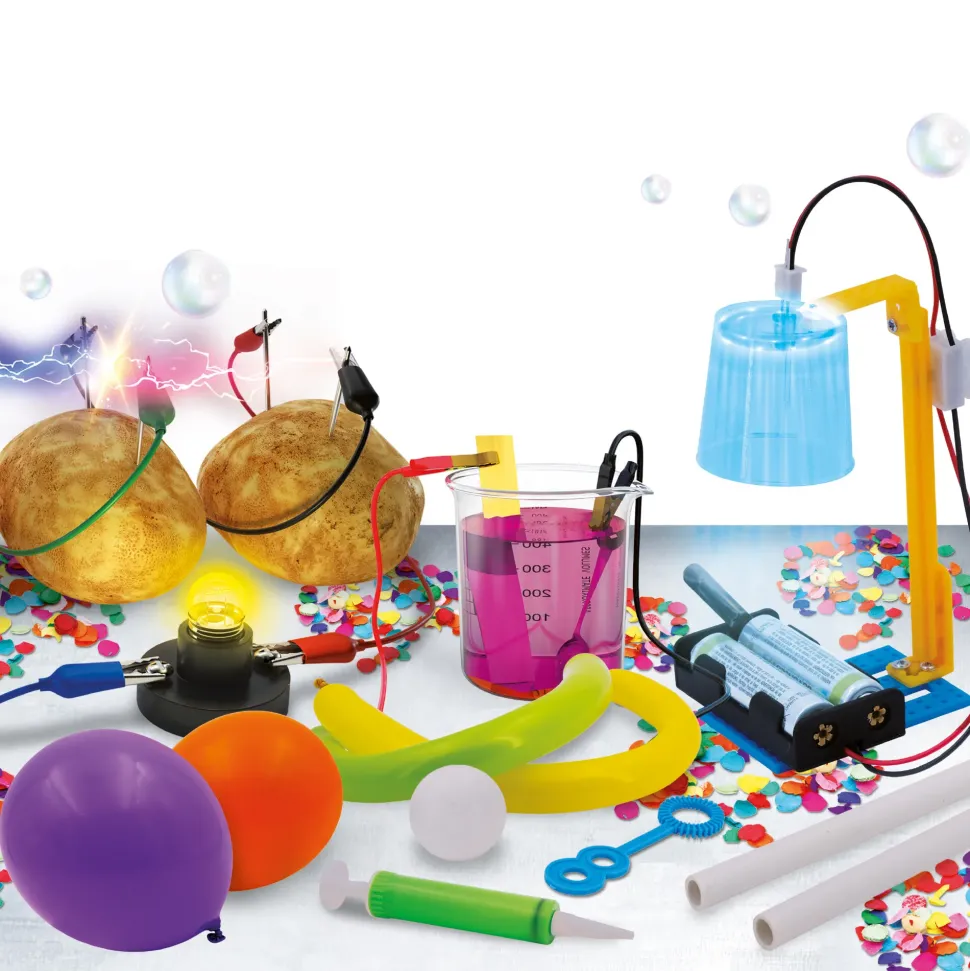 Kit Lampadina, Cannucce, Tubo Di Plastica, Palloncini, Carta Velina, Cavi Alligatore, Stick Per Bolle, Pallina Di Polistirolo, Charm Lente D’Ingrandimento, Carte Esperimenti, Manuale Illustrato!