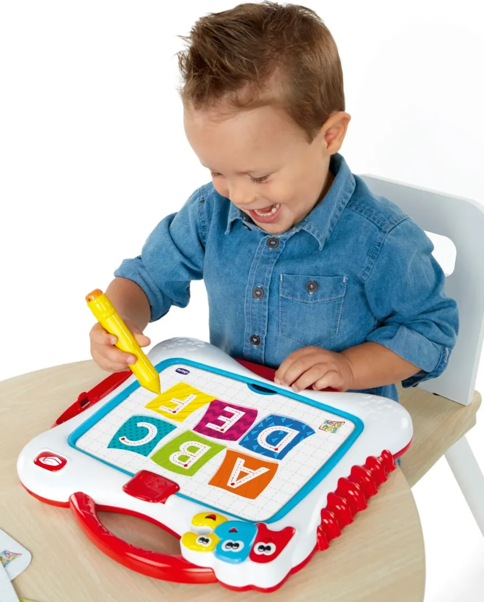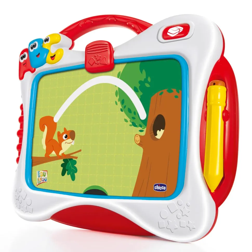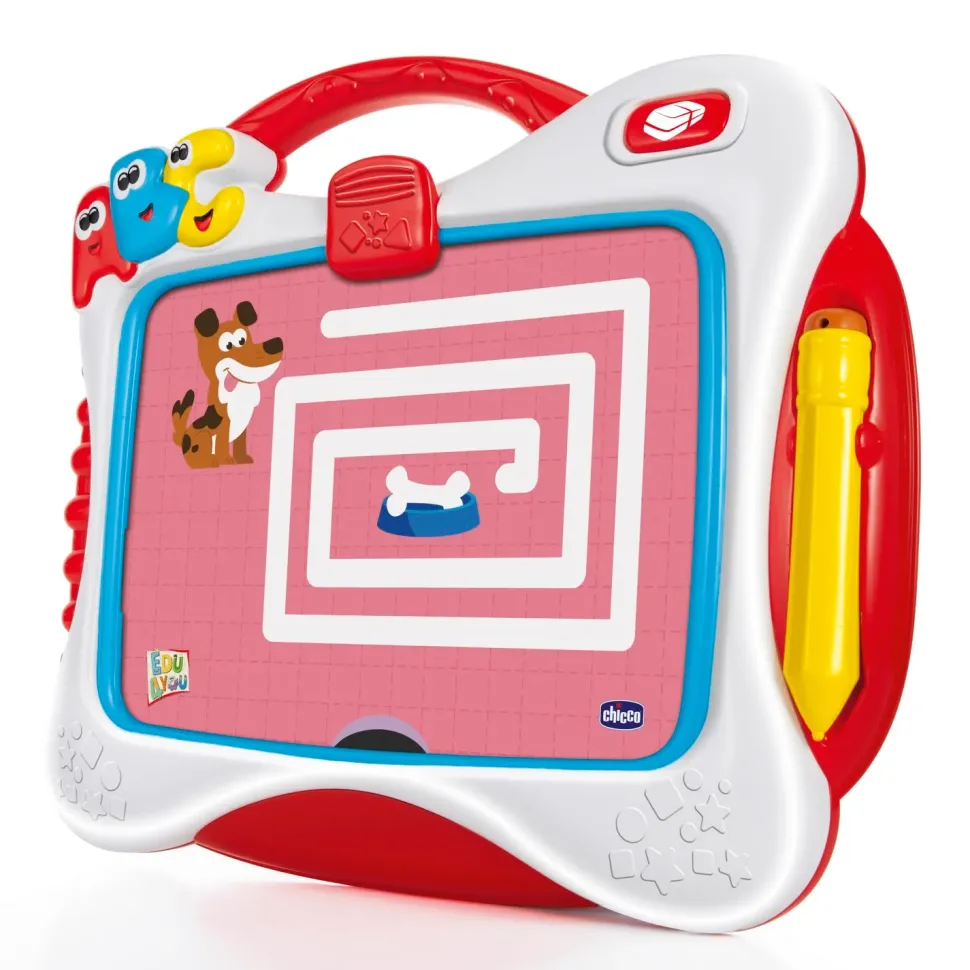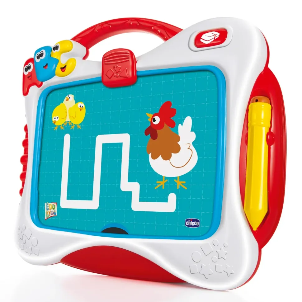 La Lavagna Allena Le Abilità Di Pre-Scrittura Grazie Alle Dieci Schede Incluse Che Rappresentano Percorsi Da Seguire, Lettere E Numeri, Facilmente Applicabili Sullo Schermo Della Lavagnatta Con La Clip Blocca-Carte. Include 4 Modalità Di Gioco:
