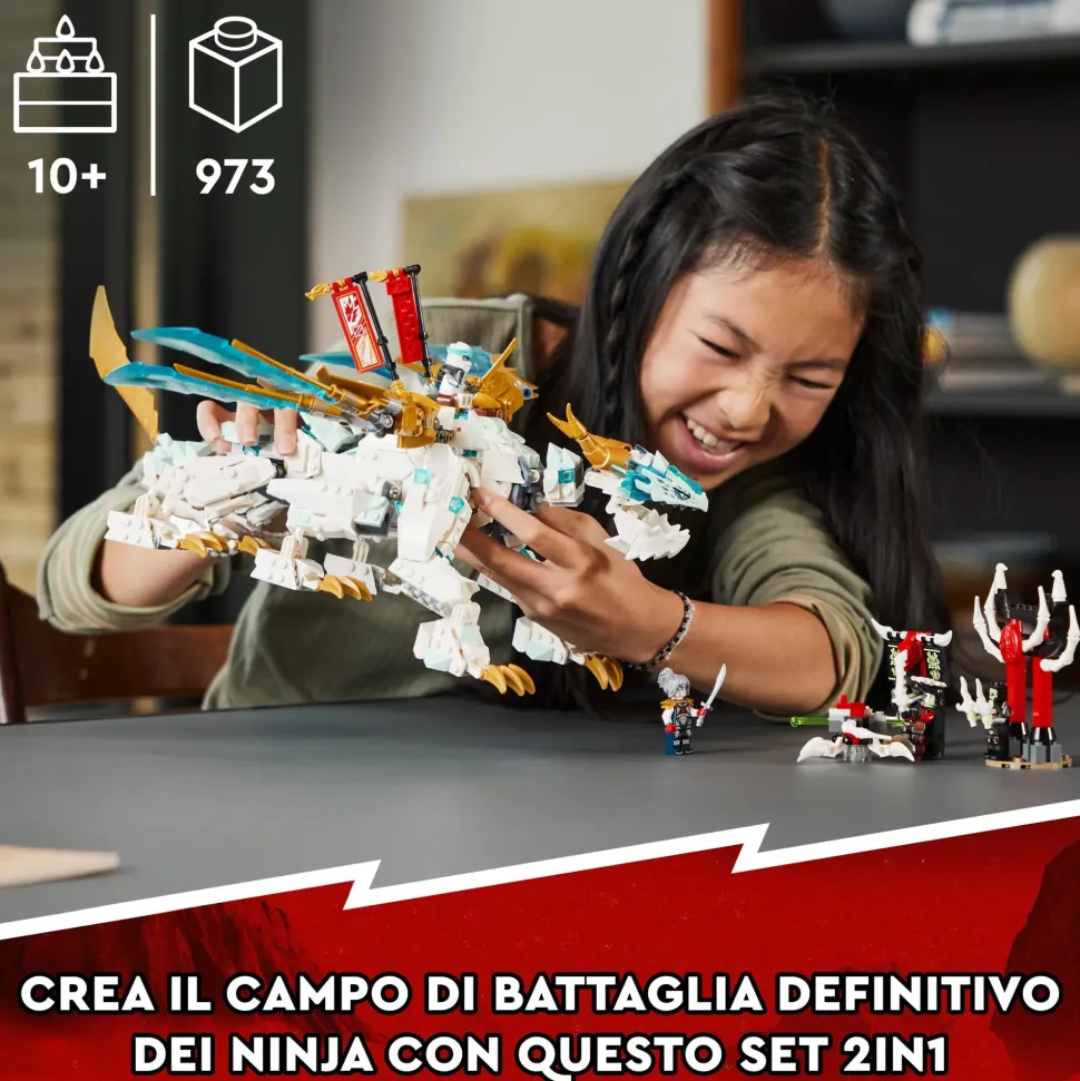 Il Set Di Costruzioni Lego Ninjago 2 In 1 Drago Di Ghiaccio Di Zane (71786) Contiene Tutto Ciò Di Cui I Bambini Dai 10 Anni In Su Hanno Bisogno Per Giocare Di Ruolo Con I Loro Eroi Ninja. Come Il Fantastico Drago Giocattolo Trasformabile Di Grandi Dimensioni, Con Cui Inventare Tanti Giochi Creativi Per Vivere Intense Battaglie Ninja E Difendere Ninjago City.