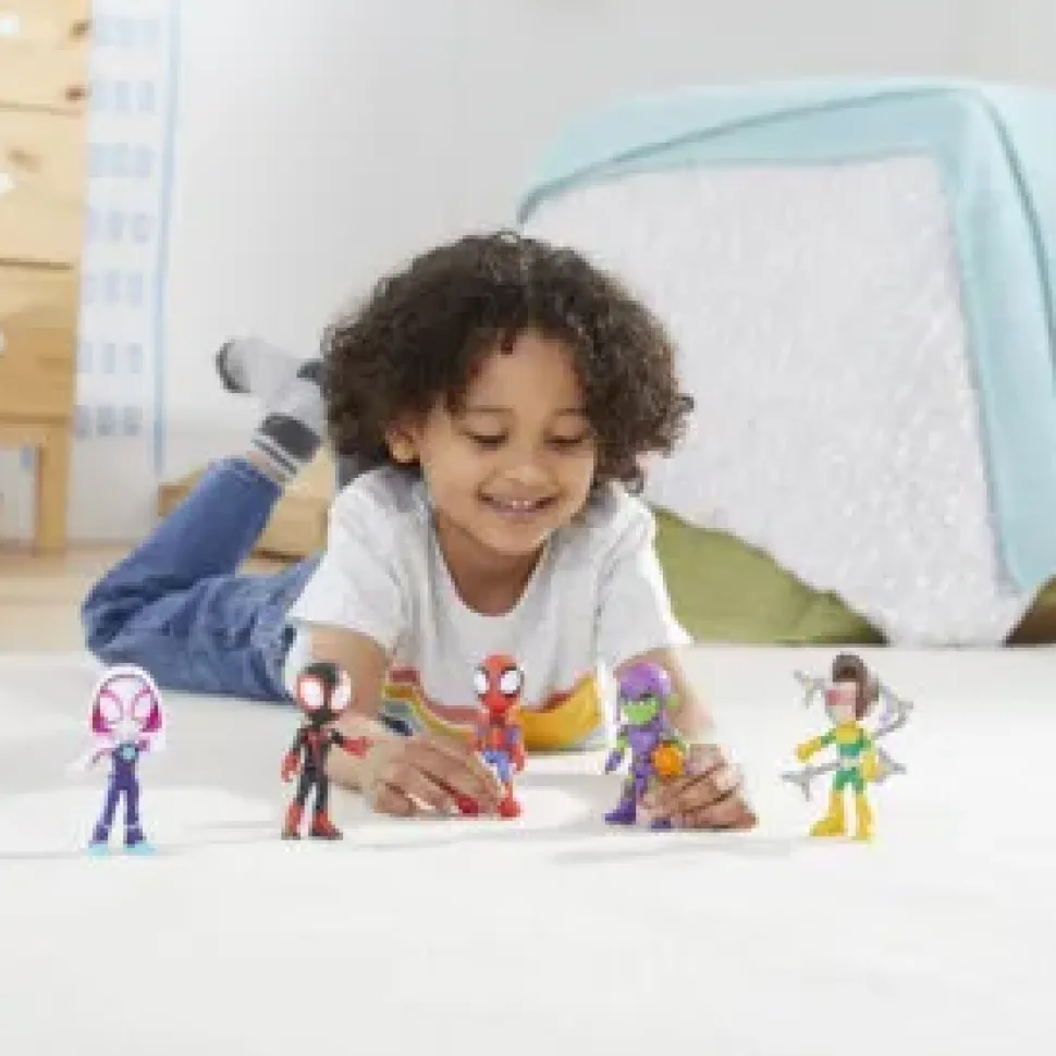 Spidey, Ghost-Spider E Miles Morales Hanno Un Forte Legame D’Amicizia Che Li Unisce: Ecco Perché Creano Un Team Formidabile Contro Green Goblin E Doc Ock! È Il Momento Di Spidey! La Serie Marvel “”Spidey And His Amazing Friends”” Ripercorre Le Avventure Del Supereroe Spidey E Di Tutti I Suoi Eroici Amici! Spidey, Ghost-Spider E Miles Morales Hanno Tutti Super Poteri Da Ragno: Senso Del Ragno, Super Forza, Capacità Di Arrampicarsi Sui Muri E Molto Altro Ancora! Quando Lavorano Insieme, Creando Il Fantastico Team Spidey, Sono Ancora Più Forti! Ma Anche La Squadra Migliore A Volte Ha Bisogno Di Una Mano Ed È Proprio In Questi Momenti Che Torna Davvero Utile Poter Contare Su Alleati Come Ms. Marvel, Black Panther E Perfino Hulk! È Difficile Essere Un Supereroe, Ma Aiuta Avere Al Proprio Fianco Amici Così Fantastici! Fermare I Cattivi E Scalare I Muri: Il Team Spidey Può Fare Di Tutto! Copyright Marvel. Tutti I Marchi Commerciali E I Marchi Commerciali Registrati Appartengono Ai Rispettivi Titolari. Hasbro E Tutti I Termini Correlati Sono Marchi Commerciali Di Hasbro.