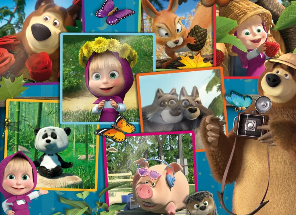 Divertiti A Ricostruire Le Scene Più Belle Di Masha E Orso, Dopo Aver Completato Il Puzzle, Il Divertimento Continua! Sul Retro Della Tavola Troverai Una Scena In Bianco E Nero Tutta Da Colorare!