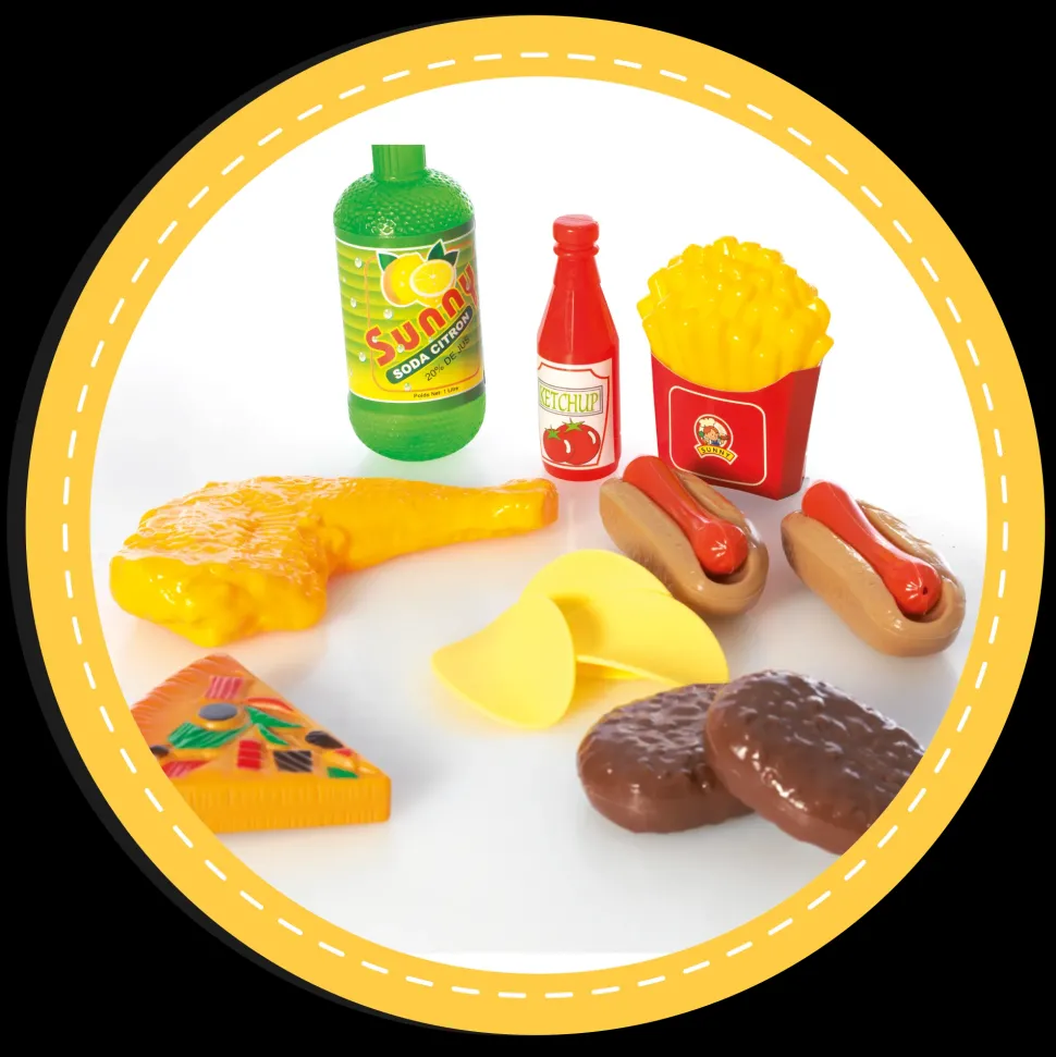 Set Con 114 Alimenti Giocattolo Per Un Party In Allegria. Il Set Include: