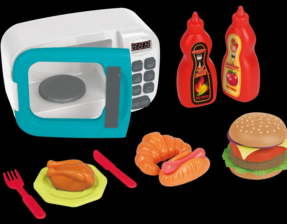 Pronti A Giocare In Cucina? Questo Set Con Microonde Riproduce Le Funzioni Dei Modelli Veri Ma In Versione Giocattolo!Facile Da Usare:Posiziona Il Cibo Sul Piattino, Imposta Il Timer Premendo I Tasti Illustrati E Poi Start!Il Piatto Gira Finchè Il Timer Non Si Spegne Proprio Come Un Vero Microonde!La Luce All’Interno Dell’Apparecchio Simula La Funzione Di Riscaldamento Dei Cibi E Gli Effetti Sonori Rendono Questo Gioco Ancora Più Realistico.Cosa C’E’ All’Interno: Contiene Un Microonde Giocattolo Con Effetti Sonori E Luminosi, Un Set Di Cibi Giocattolo Tra Cui Un Hot Dog, Un Croissant, Un Panino Con Ingredienti Assemblabili, Un Pollo E 2 Bottiglie Di Salse Diverse Per Condire Le Tue Specialità! Include Anche Piattino E Posatine.Imitare Per Crescere! Giochi Della Linea Funny Home Sono Giochi Di Ruolo Attraverso I Quali I Bambini Possono Imitare Il Mondo Dei Grandi Sviluppando Così Socialità, Empatia, Immaginazione E Fiducia In Sé Stessi!
