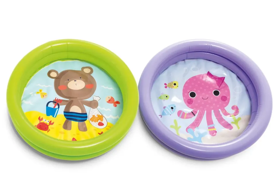 Con La Sua Struttura Ad Anelli In Resistente Vinile, La Mini Piscina Gonfiabile Intex Presenta Un Fondo Con Stampa Animaletti Ed È Maneggevole, Sicura E Giocosa.