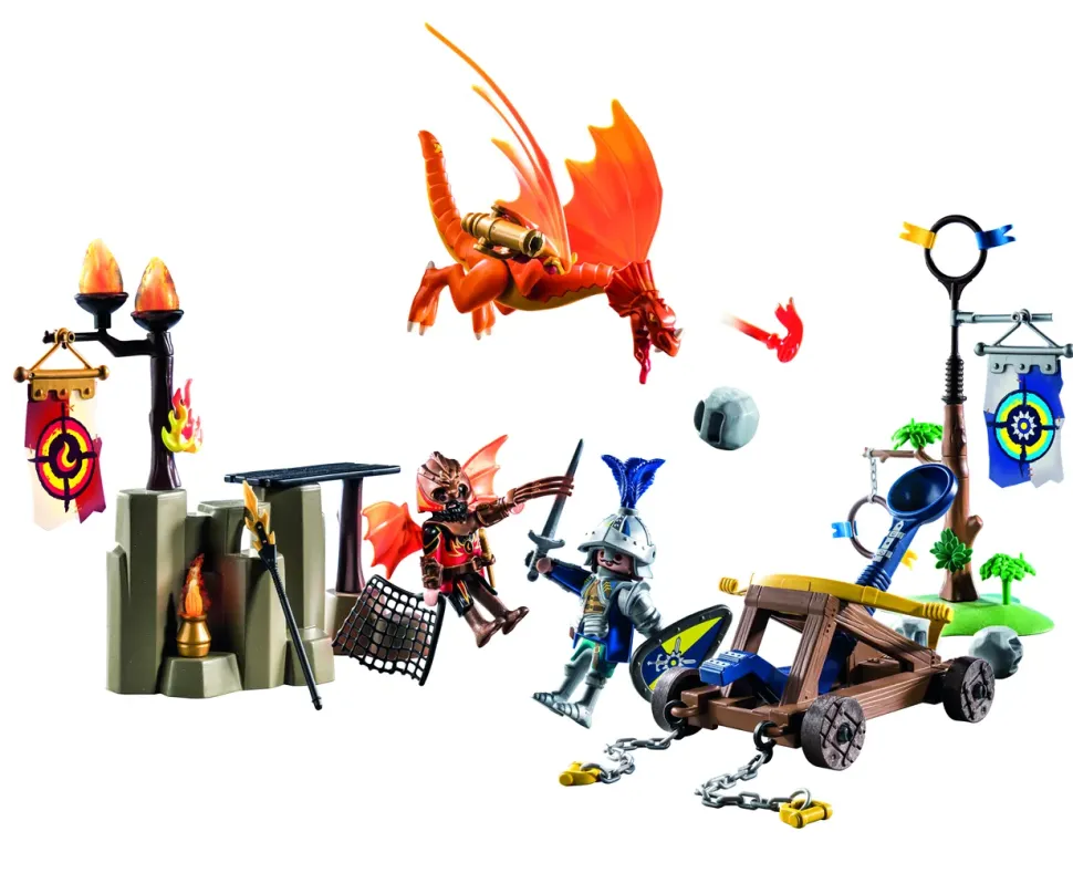 Benvenuti Al Grande Torneo Dei Cavalieri Di Novelmore! Qui I Cavalieri Più Coraggiosi Si Incontrano E Misurano Le Loro Abilità Nelle Varie Discipline.Il Generale Mcgriffin Sguaina La Spada E Con Una Catapulta Si Scaglia Contro Tyragon, L’Addestratore Di Draghi Dei Guerrieri Di Burnham Supportato Dal Suo Drago Di Fuoco.