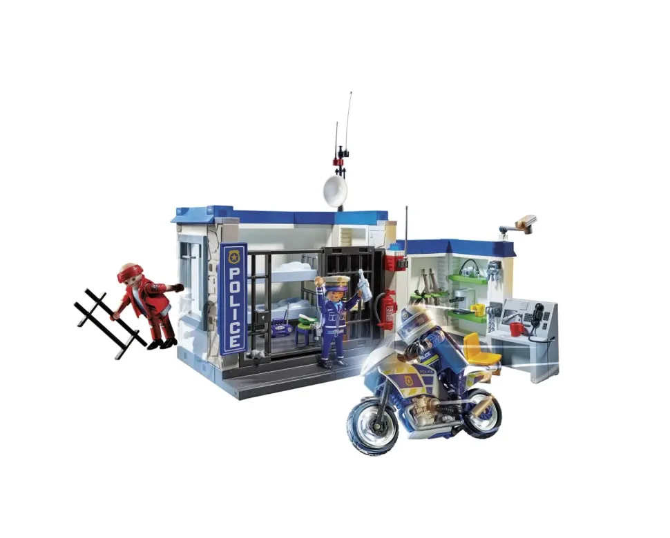 Il Set Da Gioco Contiene Tre Personaggi Playmobil, Una Stazione Di Polizia Con Una Cella E Una Postazione Di Lavoro, Scaffali, Macchinetta Del Caffè, Una Moto Della Polizia E Molto Altro Per Emozionanti Avventure.