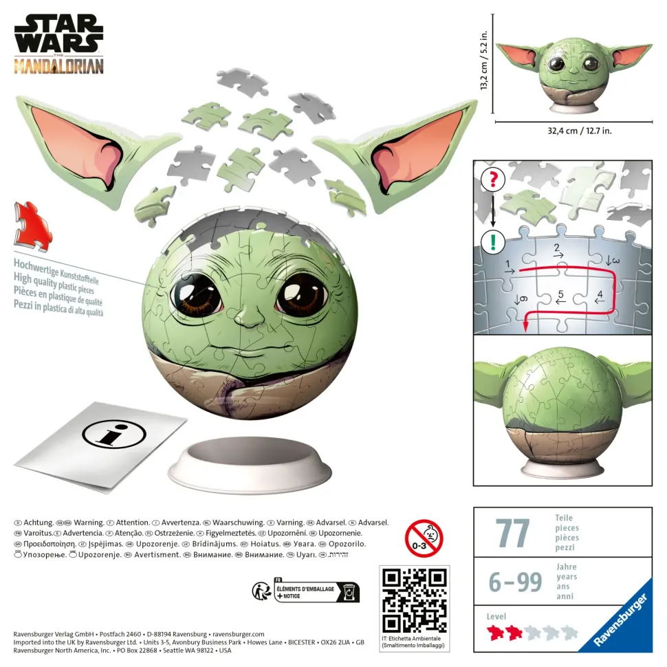 Ravensburger 3D Puzzle Grogu Con Le Orecchie, 72 Pezzi, 6+ Anni