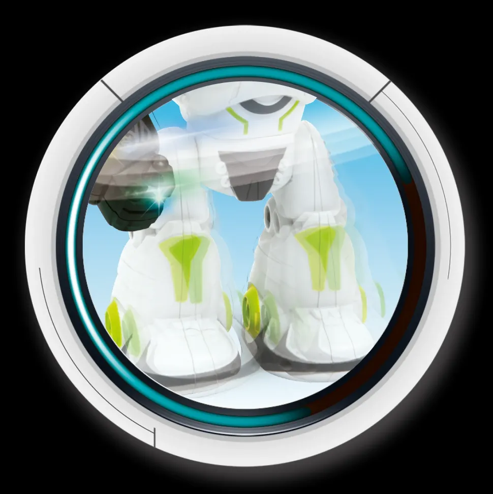 Robot Space Di 22 Cm Di Altezza. Cammina E Ruota A 360°. Luci E Suoni. Armi Incluse. Con Funzione Lancia-Missili!