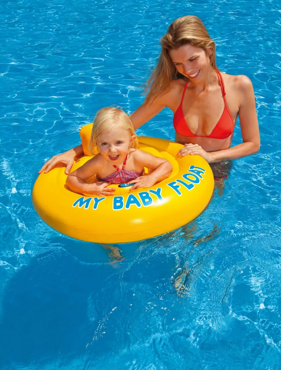 Salvagente Mutandina 70 Cm Di Diametro,“My Baby Flot” Con Poggiatesta Colore Giallo, Composto Da Due Anelli Uno Grande E Uno Piccolo Interno Per Maggiore Stabilità, Seduta Adatta Al Pannolino, 4 Camere D’Aria, Portata Massima 11 Kg, Età Mesi 6-12
