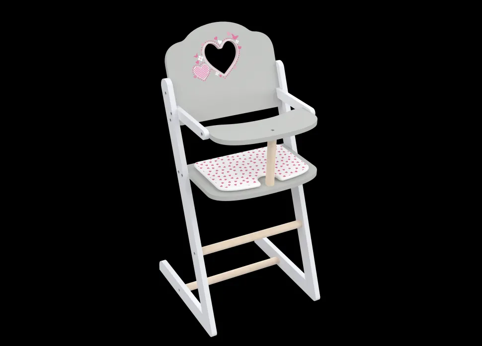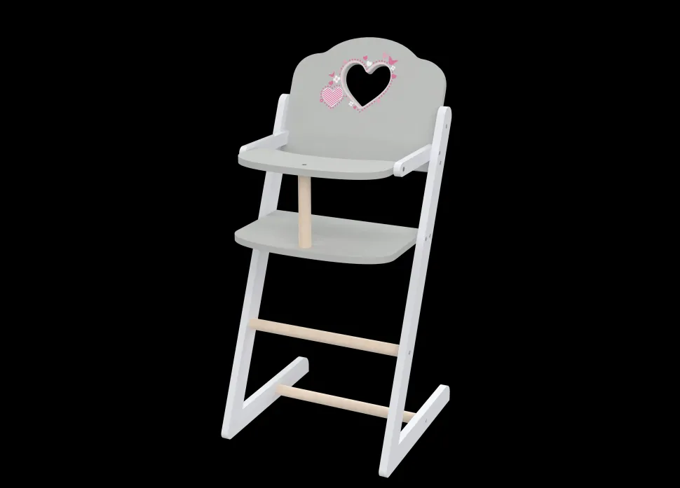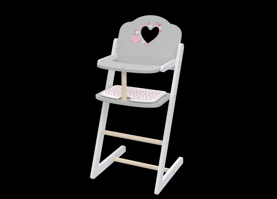 E’ L’Ora Della Pappa Per Le Tue Bambole! Bellissimo Seggiolone In Legno Con Delicati Dettagli Romantici.