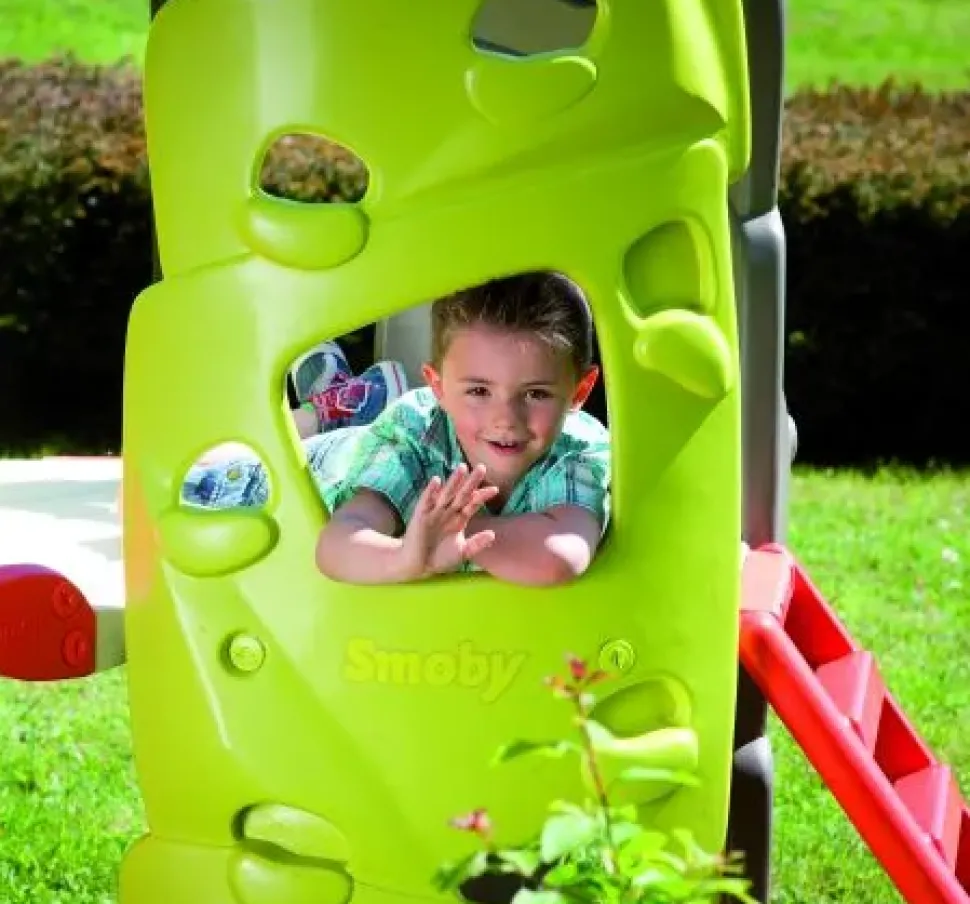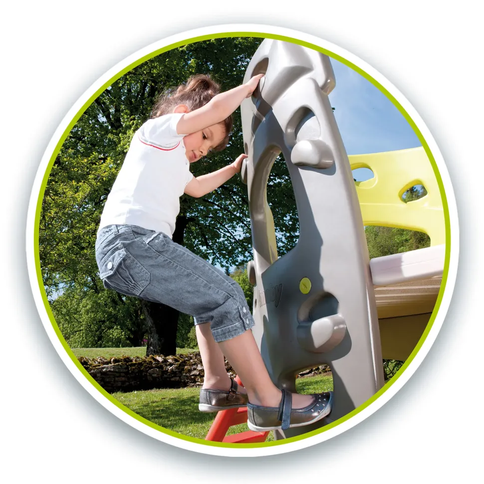 Torre Della Scalata È Un Multigioco Unico, Completo Di Tre Pareti Da Scalata, Un Tubo Da Discesa, Scaletta Che Porta Alla Piattaforma Da Cui Scendere Attraverso Lo Scivolo Che Ha Una Scivolata Di 1,50 Mt, Il Prodotto Montato Misura 240*173*170 Cm, Made In France, Sistema Anti-Uv Che Garantisce La Brillantezza Dei Colori Nel Tempo