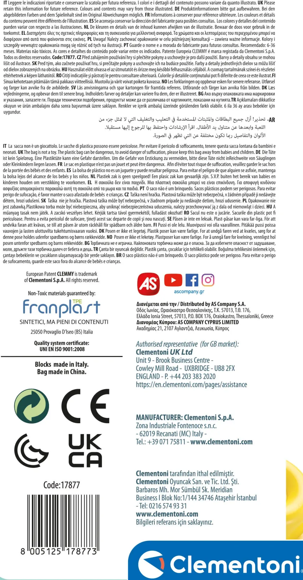 La Sacca Trasparente Contiene 20 Baby Clemmy, Morbidissimi E Colorati Mattoncini Studiati Per Far Giocare In Assoluta Sicurezza I Bambini Dai 6 Ai 18 Mesi. I Morbidi Baby Clemmy Sono Ideali Per L’Esplorazione Sensoriale Con Tanti Colori Vivaci Che Stimolano La Percezione Visiva, L’Attenzione E La Capacità D’Osservazione. Realizzati In Materiale Atossico, Lavabile E Profumato, Sono Facili Da Afferrare E Semplici Da Impilare E Supportano La Fantasia E La Creatività Del Bambino. Tutti I Mattoncini Clemmy Sono Prodotti In Italia. Sicuri E Lavabili