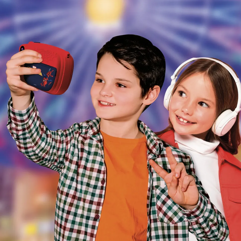 Una Fotocamera Istantanea Di Spider-Man Per Creare E Stampare Foto Con Effetti Divertenti. Molto Facile Da Usare, Permette Di Realizzare Video E Di Raccogliere E Condividere Foto Con Gli Amici. E In Più Consente Di Scattare Selfie Grazie Alla Dual Camera. Con Le Fantastiche Cornici Di Spider-Man, Potrai Collezionare Tutte Le Tue Foto!