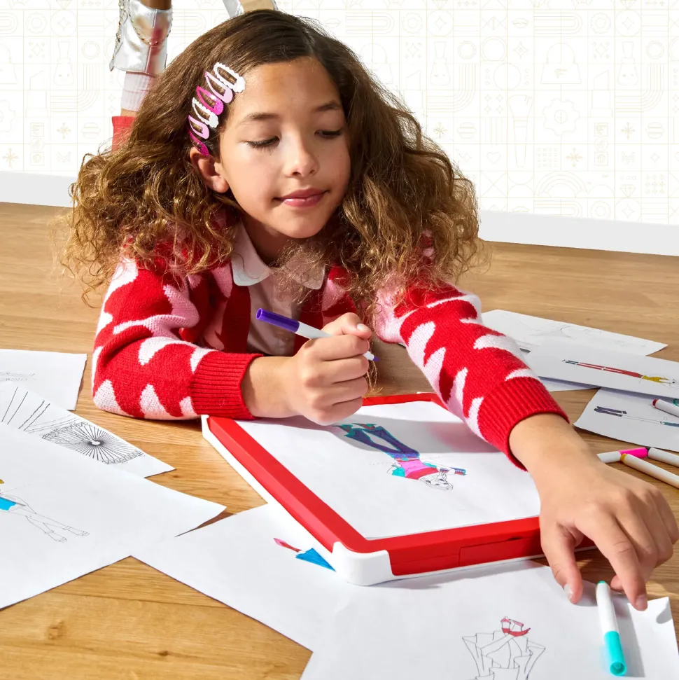 Libera La Tua Creatività Ed Entra Nell’Entusiasmante Mondo Del Design Di Moda Con La Tavoletta Da Ricalco F.A.O. Schwarz® Flawless Fashion Designer Light-Up. Il Set Presenta Modelli Intercambiabili Che Rendono Facile Creare Stili Di Moda Unici E Alla Moda Letteralmente A Portata Di Mano. Il Tablet Illumina I Tuoi Disegni, Offrendo Una Superficie Di Ricalco Luminosa Che Mantiene Saldamente Il Foglio In Posizione. Questo Set Include Tutto Il Necessario Per Iniziare Il Tuo Viaggio Nella Moda: 8 Pennarelli Colorati, 10 Modelli Di Moda, 1 Panno Per La Cancellazione E 10 Fogli Di Carta Da Ricalco. Quando Il Tempo Di Gioco È Finito, Tutti I Pennarelli, La Carta E I Modelli Possono Essere Riposti In Modo Ordinato All’Interno Della Tavola Da Ricalco. Questo Set È Consigliato Per Bambini Dai 6 Anni In Su Che Hanno Una Passione Per La Moda E Un Talento Per Il Design. Ispirate La Prossima Generazione Di Stilisti Con Il Flawless Fashion Designer Light-Up Tracing Tablet.