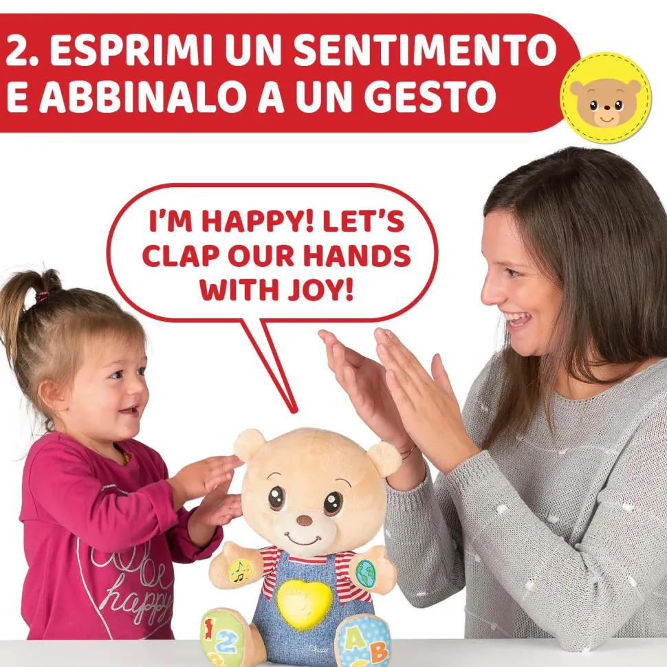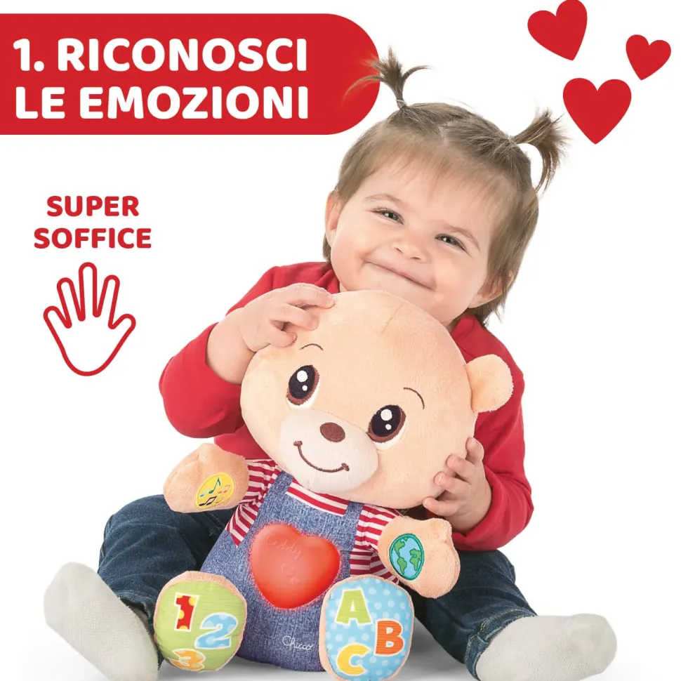 Teddy È Un Soffice Peluche Che Cresce Con Il Bambino: A Partire Dai 6 Mesi Aiuta A Sviluppare Le Capacità Cognitive E Dall’Età Di 2 Anni Guida Il Bambino Nella Scoperta Delle Emozioni.