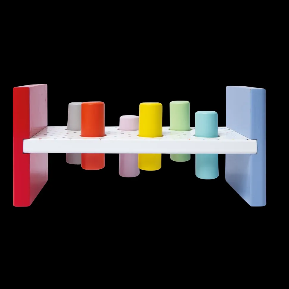Qui È Permesso Martellare A Più Non Posso! Tutti I Bambini Amano Battere Sui Pioli Colorati! I Fori, Dotati Di Guarnizioni Interne In Gomma, Rallentano La Discesa Del Piolo Rendendo Il Gioco Ancora Più Divertente.