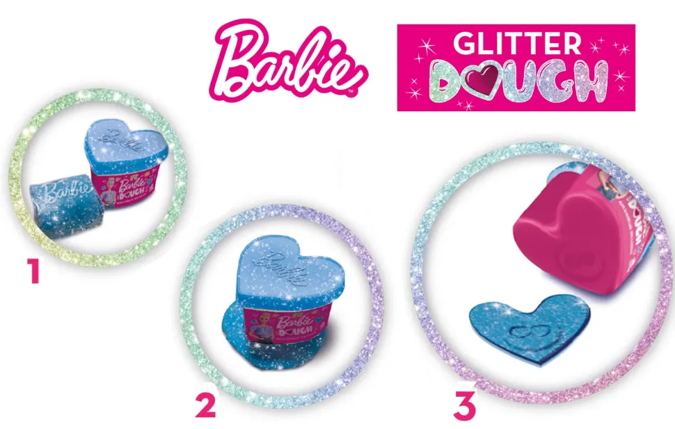 Raccolti In Un Super Multi Pack Casa Di Barbie, 5 Vasetti A Forma Di Cuore Con Dough Glitter E 5 Diversi Stampini Con Le Icone Più Belle Di Barbie. Scegli I Colori Che Più Ti Piacciono E Libera La Tua Creatività.