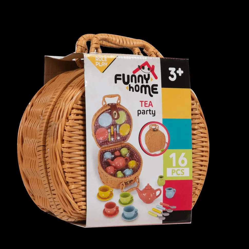 Un Elegantissimo Cestino Da Pic-Nic Con Teiera, Tazzine E Piattini In Porcellana, E 4 Cucchiaini In Colori Abbinati Per Organizzare Deliziose Merende All’Aperto Con Le Amiche!