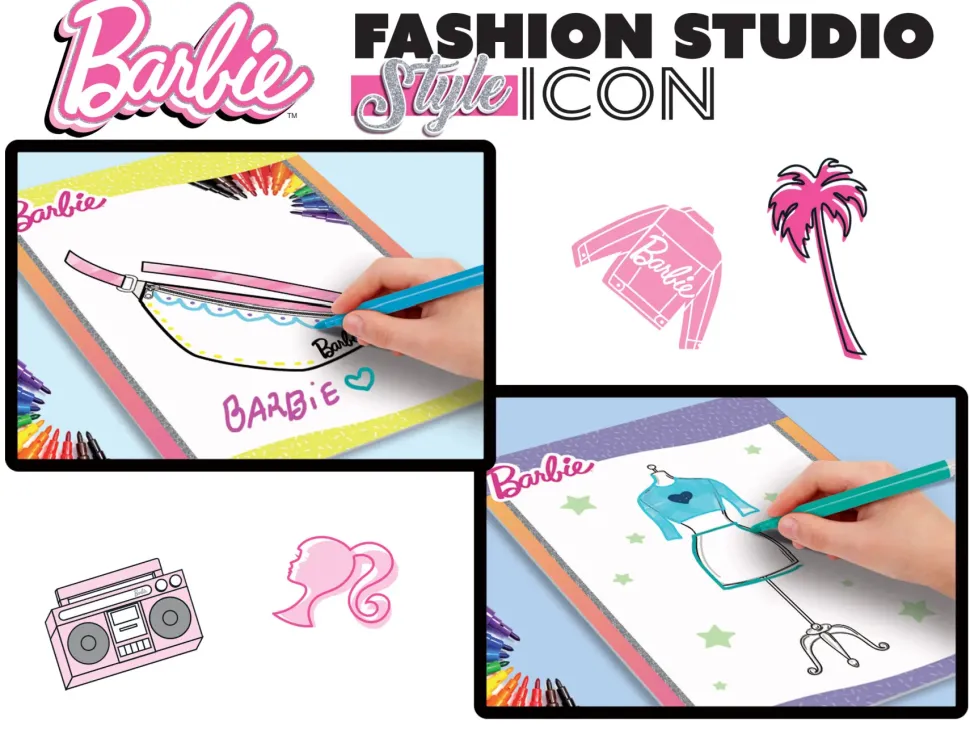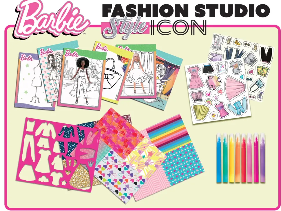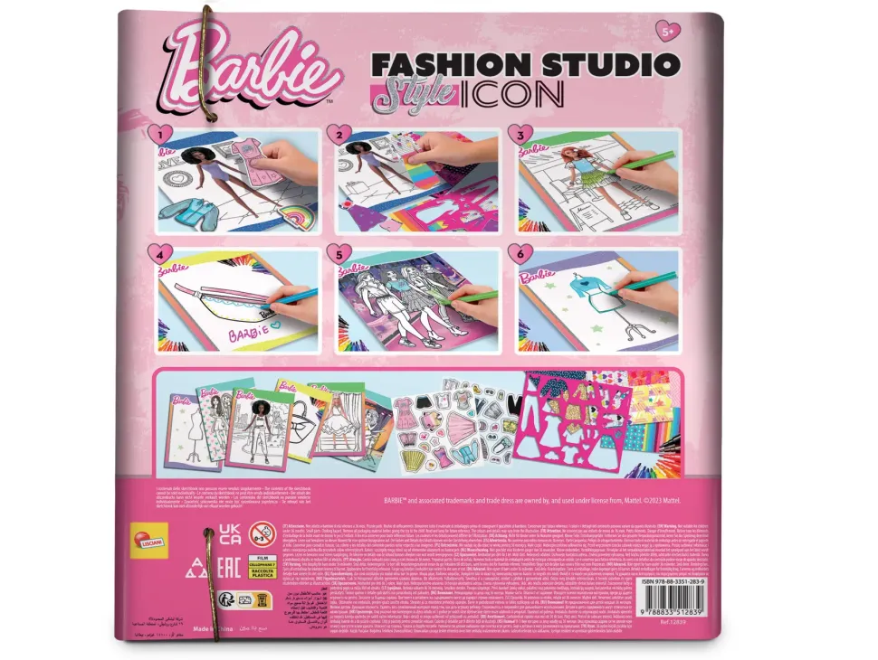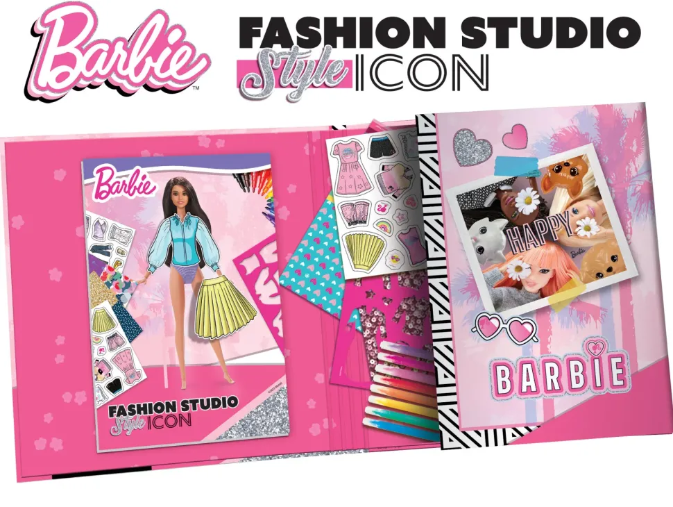 Diventa Una Brillante Designer Di Fantastici Abiti Super Fashion. Il Libro A Cartellina Include Un Libretto Con Tanti Modellini, Pattern, Stickers Di Abiti E Accessori E Uno Stencil Con Le Sagome Degli Abiti Più Belli Di Barbie.