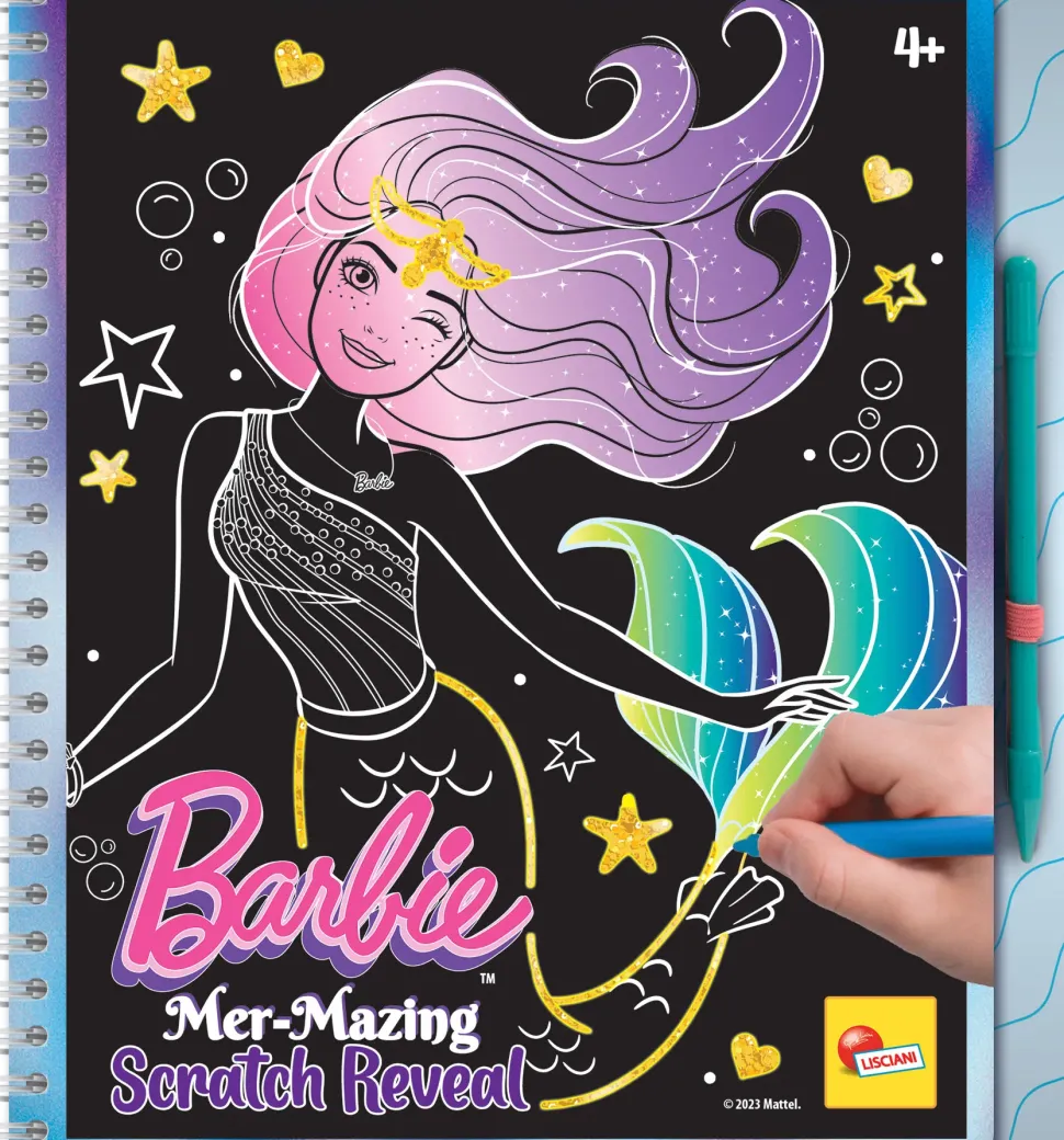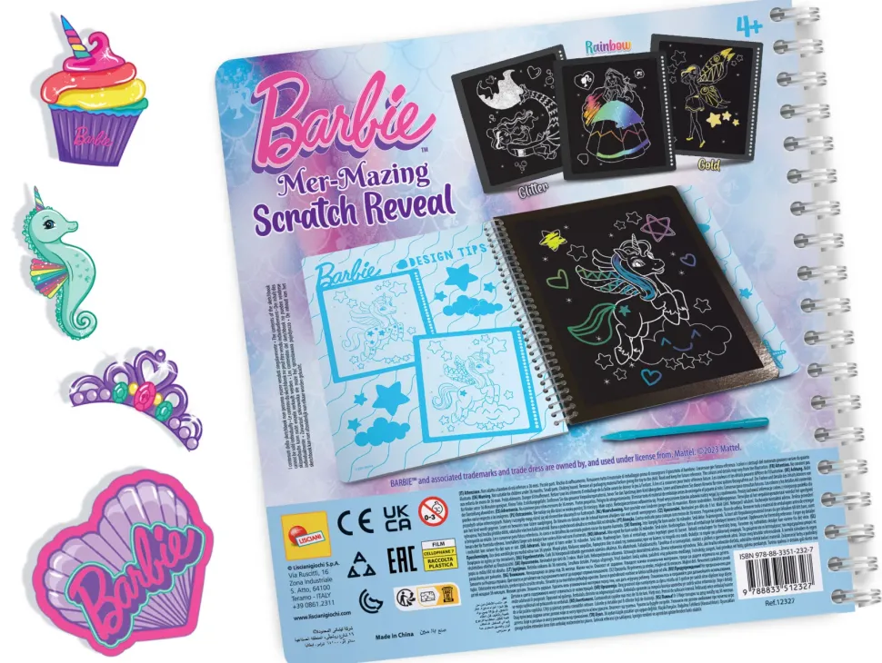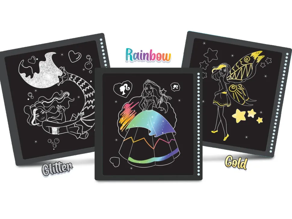 Scopri La Magia Dei Colori Con Lo Scratch Reveal Di Barbie Nel Fantastico Design Fantasy. Con La Penna In Dotazione, Gratta Lo Strato Superiore Di Colore Nero Dal Foglio E Scopri I Colori Vivaci Dell’Arcobaleno Con Fantastiche Sfumature, Tanto Scintillante Glitter E Finiture Dorate.