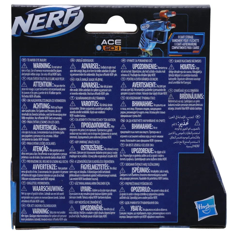 Con Il Blaster Ace Sd-1 Di Nerf Elite 2.0 Sarai Pronto Per Qualsiasi Missione E Sfida! Grazie Alle Sue Dimensioni Compatte È Ideale Per Lanci Precisi E Attacchi A Sorpresa. Dispone Di Un Comodo Portadardi Integrato Per Ricariche Rapide. Sono Inclusi Due Dardi Originali Nerf Elite In Morbida Gommapiuma, Perfetti Per Il Gioco Sia In Casa Che All’Aperto. L’Utilizzo È Semplice: Carica Un Dardo Nella Parte Anteriore Del Cannone, Arma L’Impugnatura E Premi Il Grilletto Per Lanciarlo. Si Consiglia Di Indossare Occhiali Protettivi (Non Inclusi) Per Massimizzare La Sicurezza Durante Il Gioco. Inoltre, Non Sono Necessarie Batterie Per Il Funzionamento.