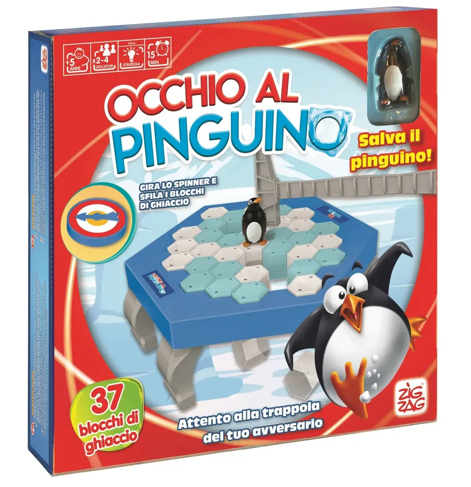 Gioco Di Equilibrio E Strategia. Costruisci La Piattaforma Di Ghiaccio. Metti Il Pinguino Sopra Un Blocco Di Ghiaccio. Gira Lo Spinner E Con Il Martello Batti Sul Cubetto Che Ti Viene Suggerito, Ma Attenzione Il Pinguino Non Deve Cadere!