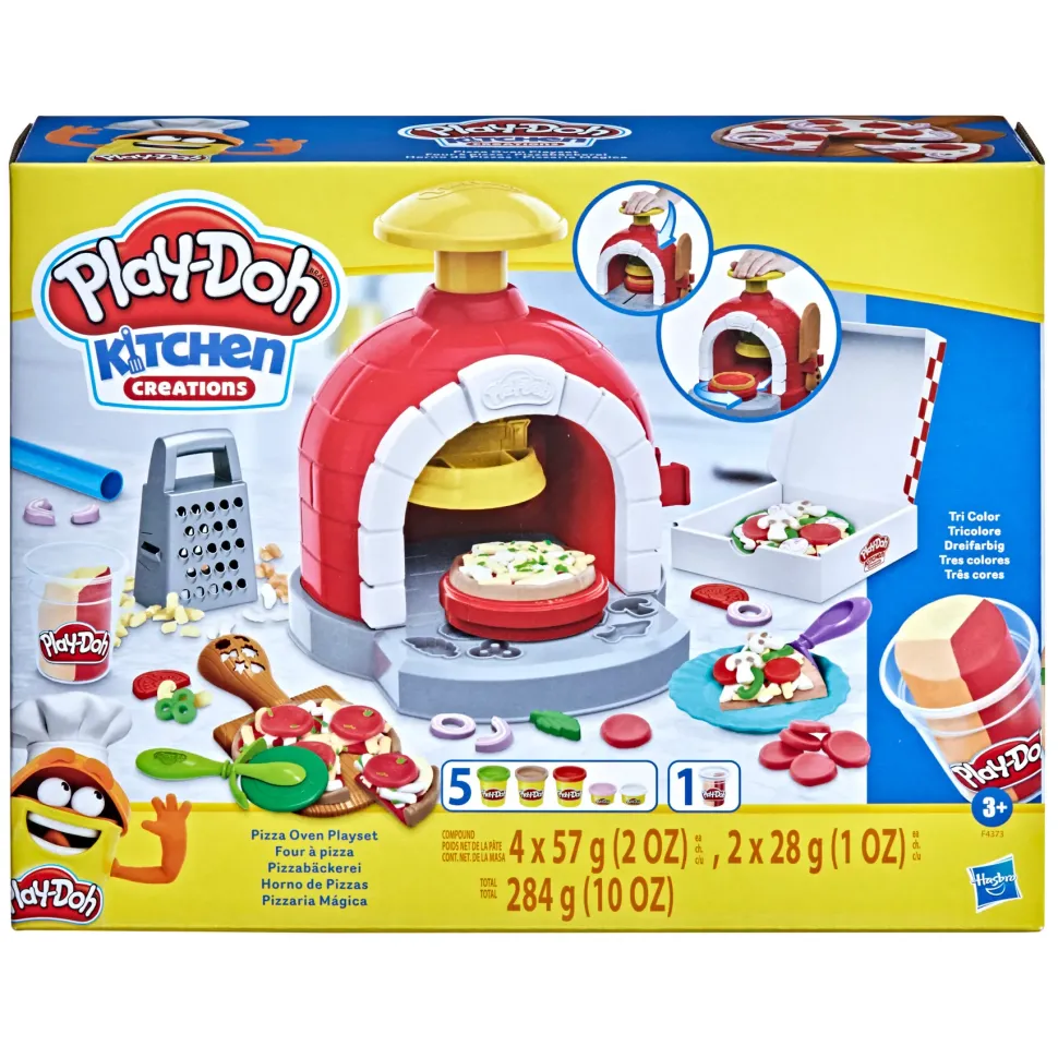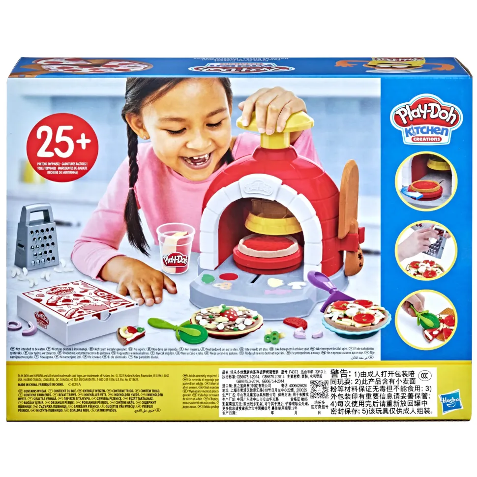 La Fantasia È Parte Del Menù Grazie A Questo Forno Per Pizza Giocattolo! I Bambini E Le Bambine Possono Fingersi Grandi Chef Mentre Creano E Fanno Roteare Pizze Fantasiose Fatte Di Pasta Modellabile Play-Doh Con Oltre 25 Condimenti Finti. Il Set Include 8 Strumenti Che Aiutano Ad Accendere La Fantasia Degli Aspiranti Cuochi E 6 Vasetti Di Pasta Modellabile In Diversi Colori A Tema Pizza, Tra Cui Un Vasetto Tricolore. I Bambini E Le Bambine Possono Inoltre Consegnare Le Loro Finte Pizze Nell’Apposita Scatola Per Pizze. Questo Set Play-Doh È Perfetto Per Attività Manuali E Da Regalare A Bambini E Bambine Dai 3 Anni In Su! Hasbro, Play-Doh E Tutte Le Proprietà Correlate Sono Marchi Commerciali Di Hasbro.