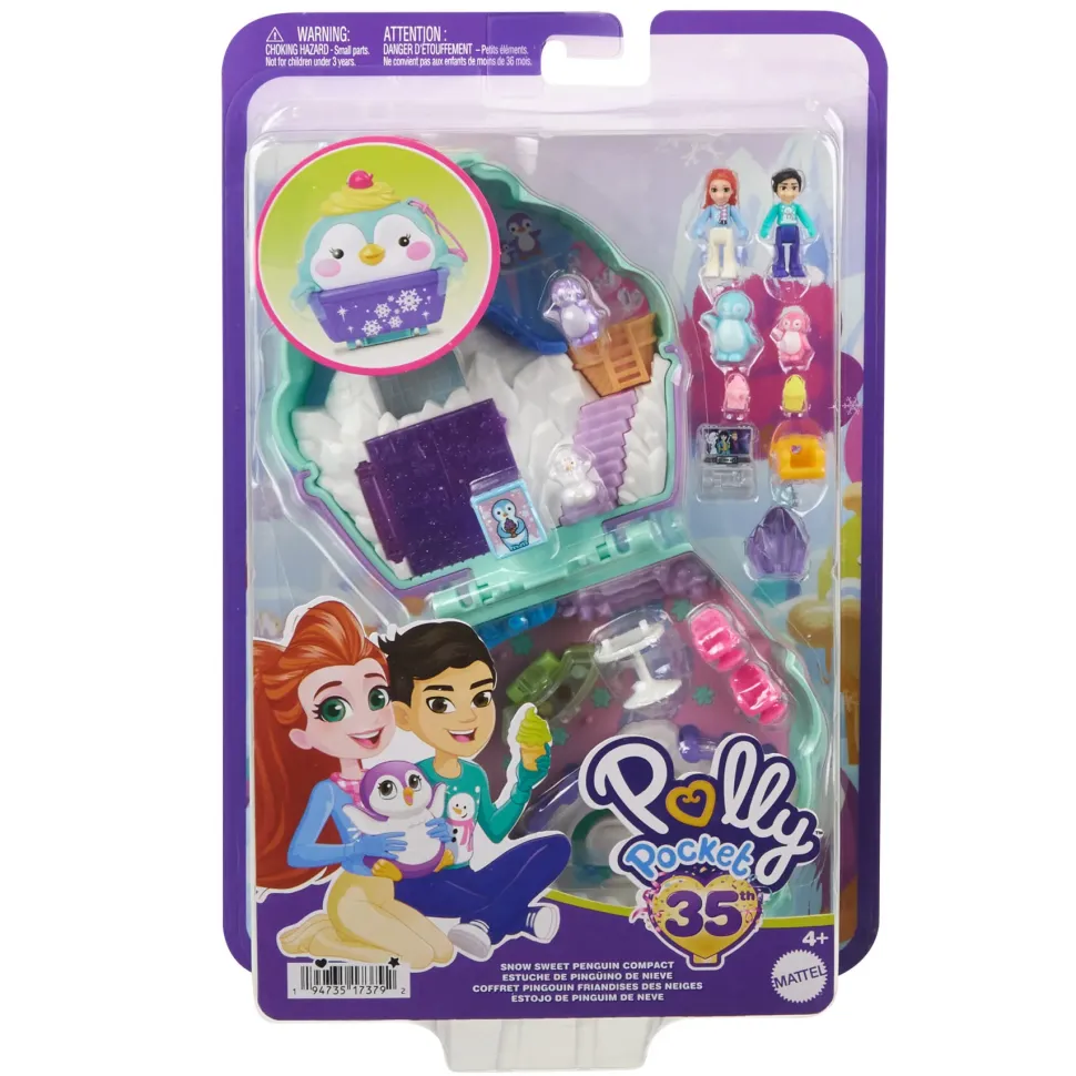 Polly Pocket Cofanetto Dolce Pinguino, Playset Da Viaggio Con Esterno Interattivo, 2 Micro Bambole E 12 Accessori Inclusi