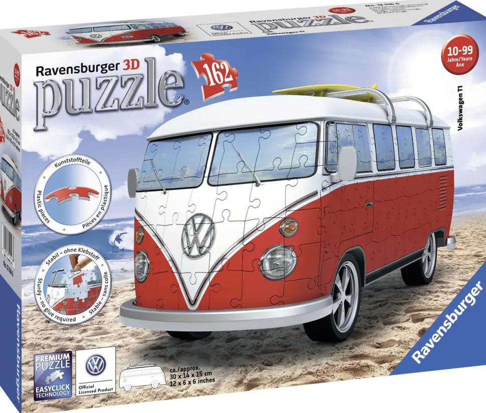 Ravensburger 3D Puzzle Camper Volkswagen T1, 162 Pezzi, 8+ Anni