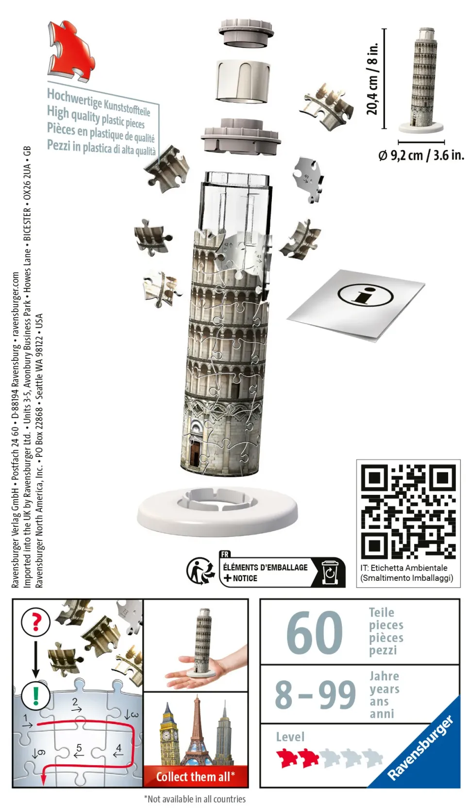 Ravensburger 3D Puzzle Mini Torre Di Pisa, 54 Pezzi, 8 Anni