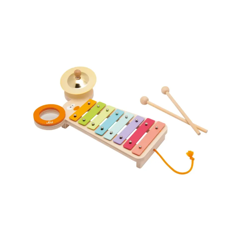 Ecco Uno Xilofono Metallico A 8 Toni, Con Base Sagomata In Legno, Dal Suono Brillante. E’ Caratterizzato Dal Viso Simpatico Di Un Topolino Con Un Orecchio Rappresentato Da Un Cimbalo Ed Uno Da Un Mini Tamburello, Che Si Possono Suonare Grazie Alle Bacchette In Dotazione.