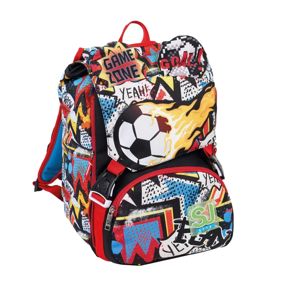 Zaino Sdoppiabile Big Sj Gang Doppio Scomparto Estensibile Tramite Zip Laterali, Alette Sollevabili Tramite Sistema Ad Aria Attivabile Dallo Spallaccio Con Pulsante A Pressione. Fantasia Allover E Stampa Posizionata.